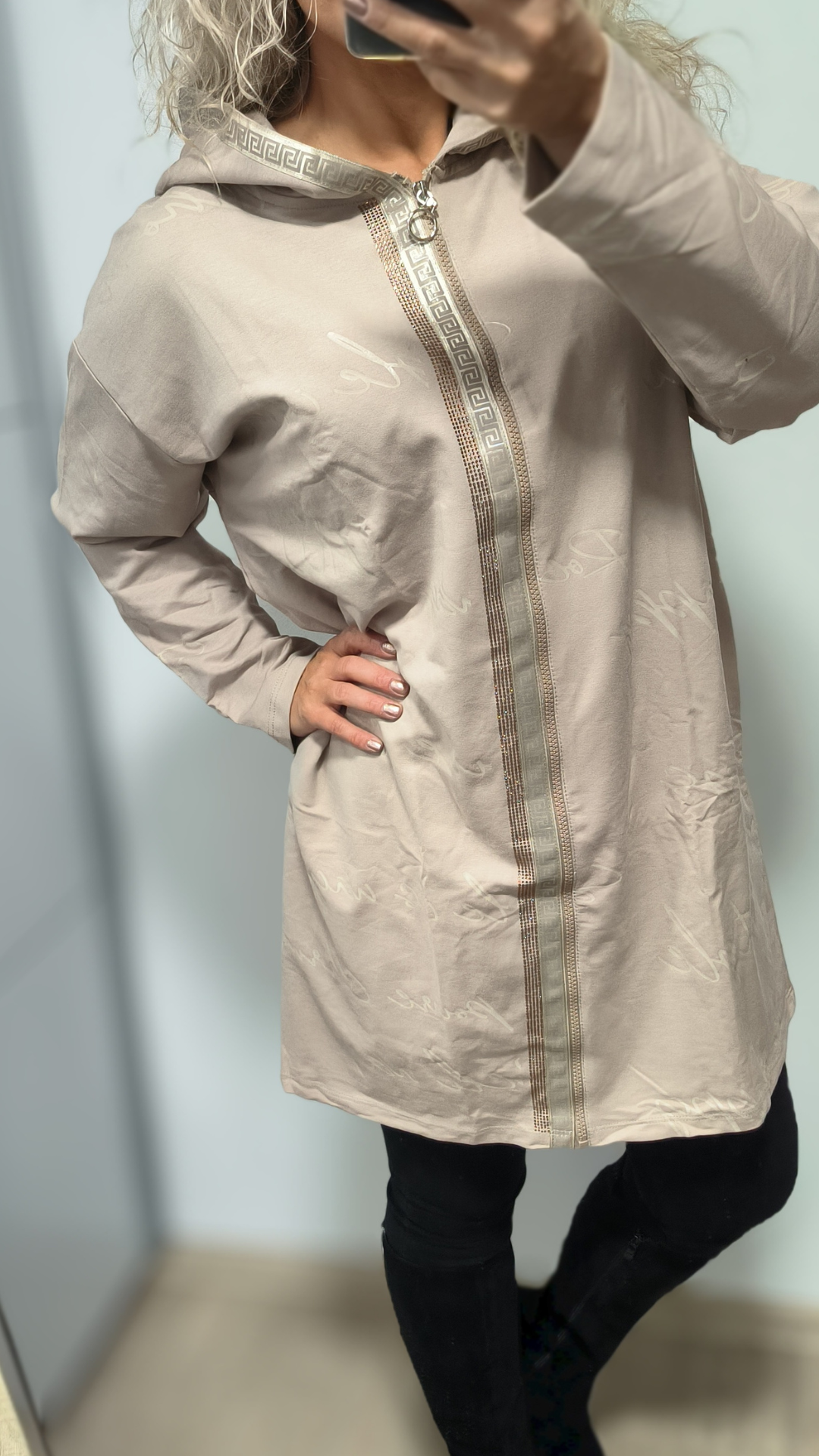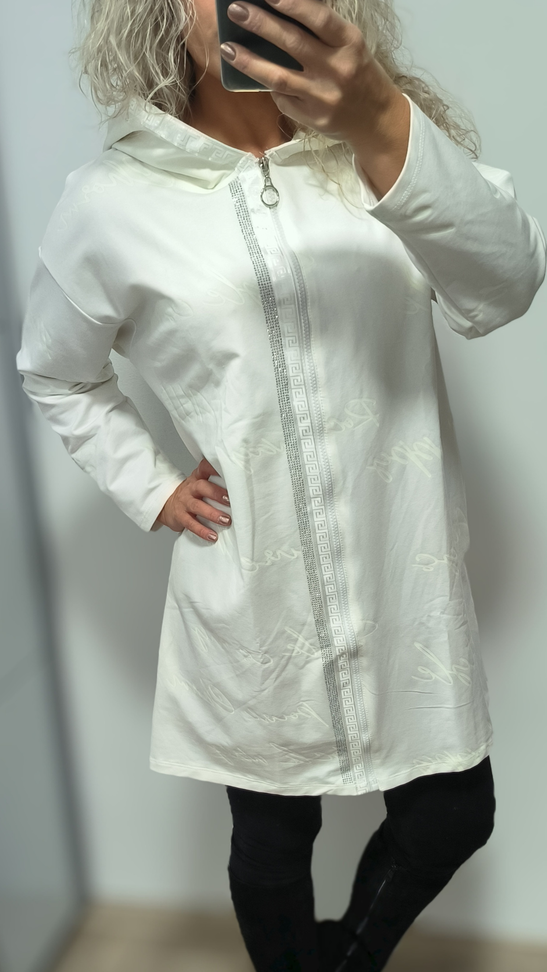 Objevte pohodlí a styl v jednom s dámskou mikinou Luma! Vyrobená z kvalitního materiálu, nabízí volnější střih, který padne každé postavě. Mikina má lemovaný zip s jemným zdobením kamínky, který dodává elegantní jiskru každému outfitu.