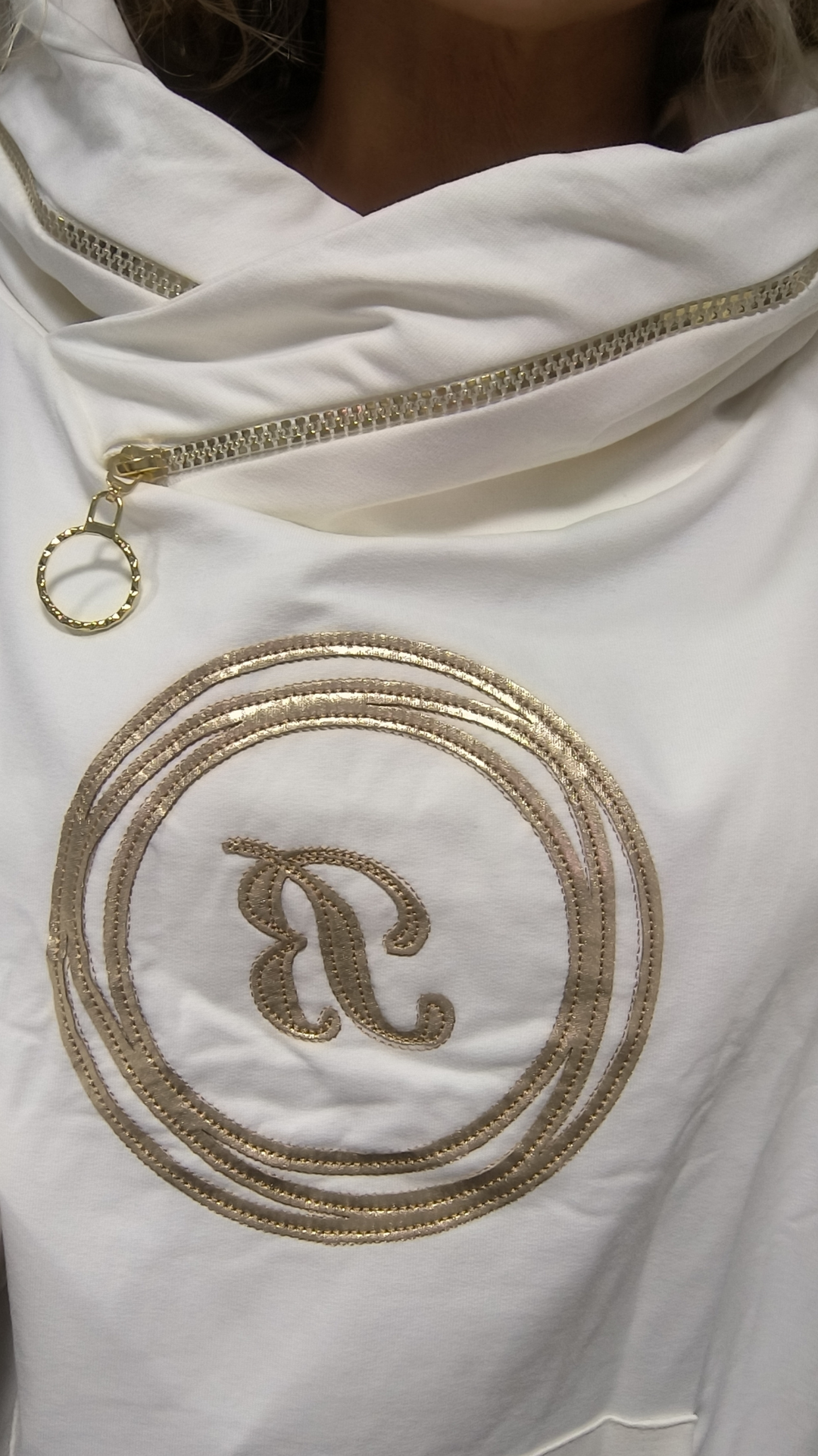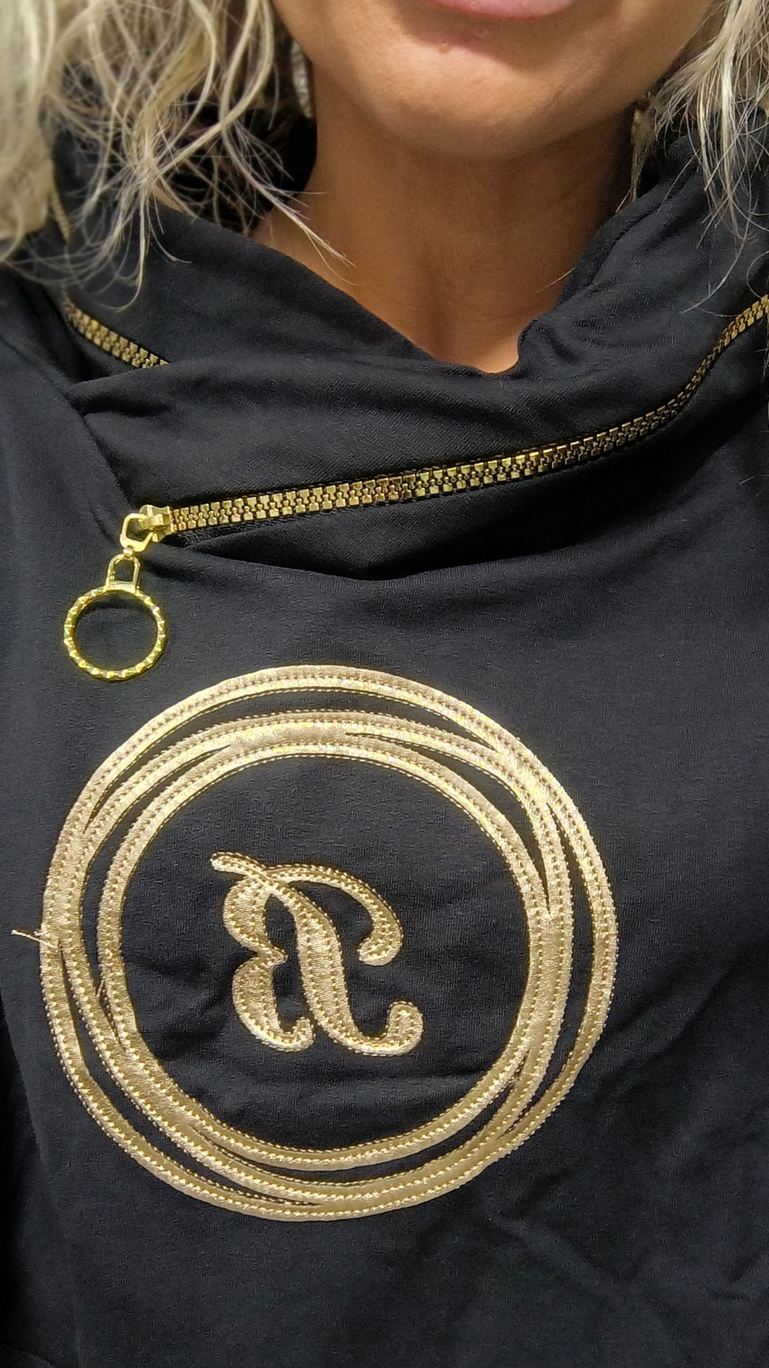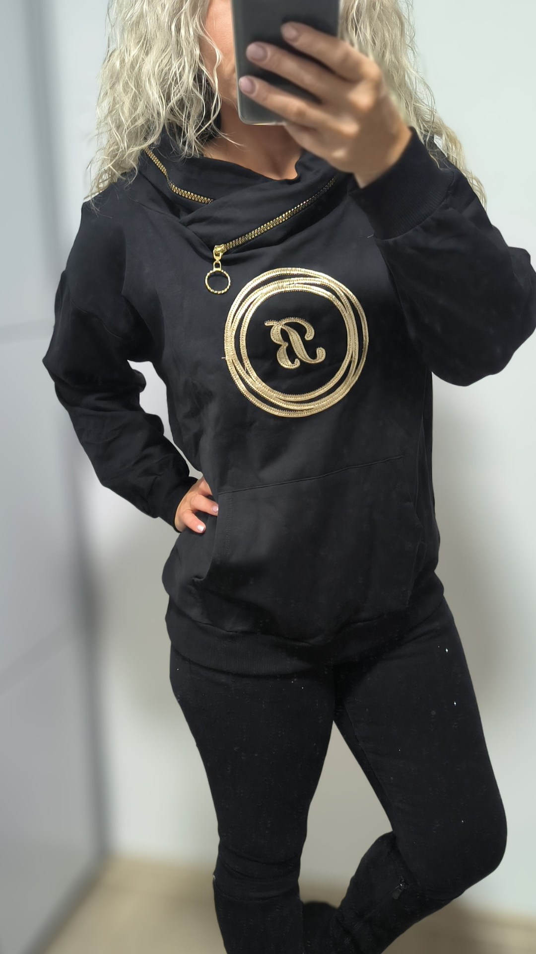 Elegantní a stylová mikina, která v sobě spojuje pohodlí a luxus. Dostupná ve dvou klasických barvách – černé a bílé – s výraznými zlatými detaily, které dodají každému outfitu šmrnc.