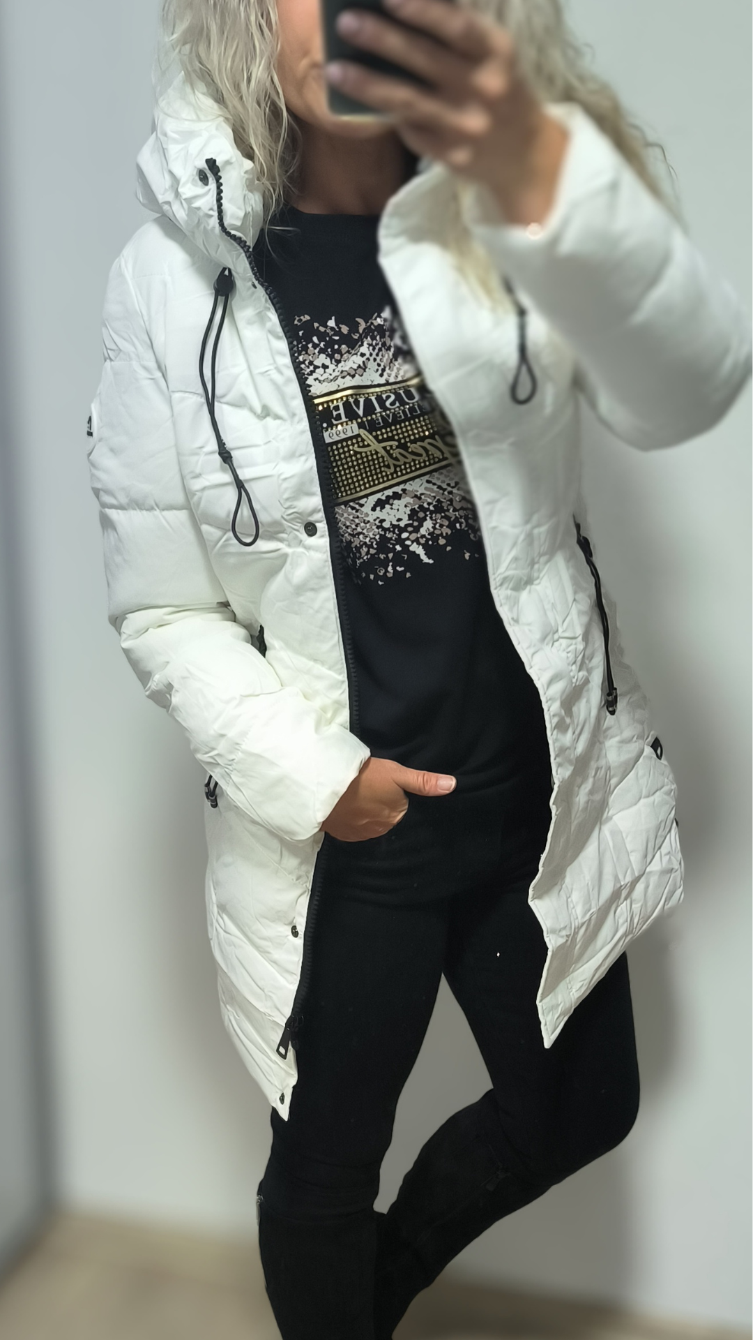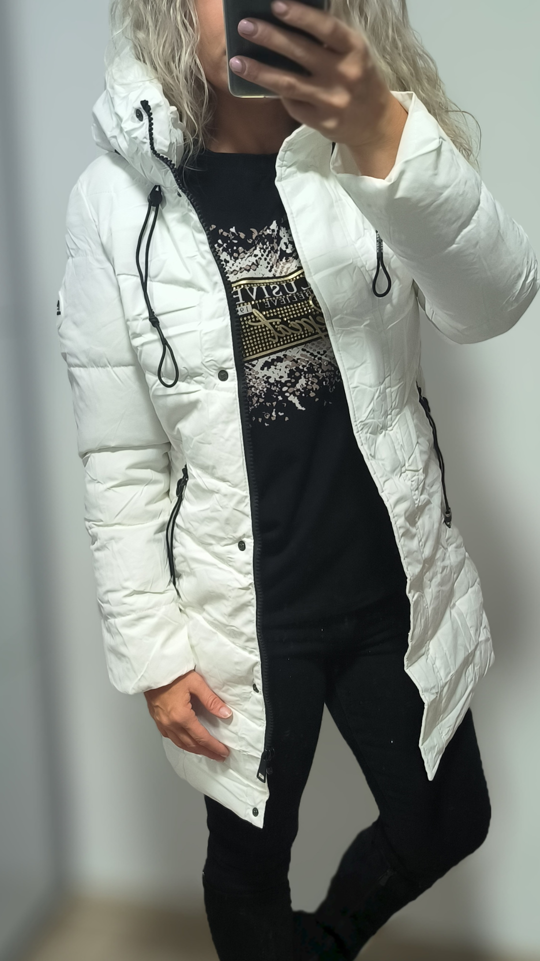 Stylová a hřejivá zimní bunda, která vás ochrání i v těch nejchladnějších dnech. Elegantní sněhově bílá barva dodává čistý a svěží vzhled, ideální pro zimní městské procházky i víkendové výlety do přírody.