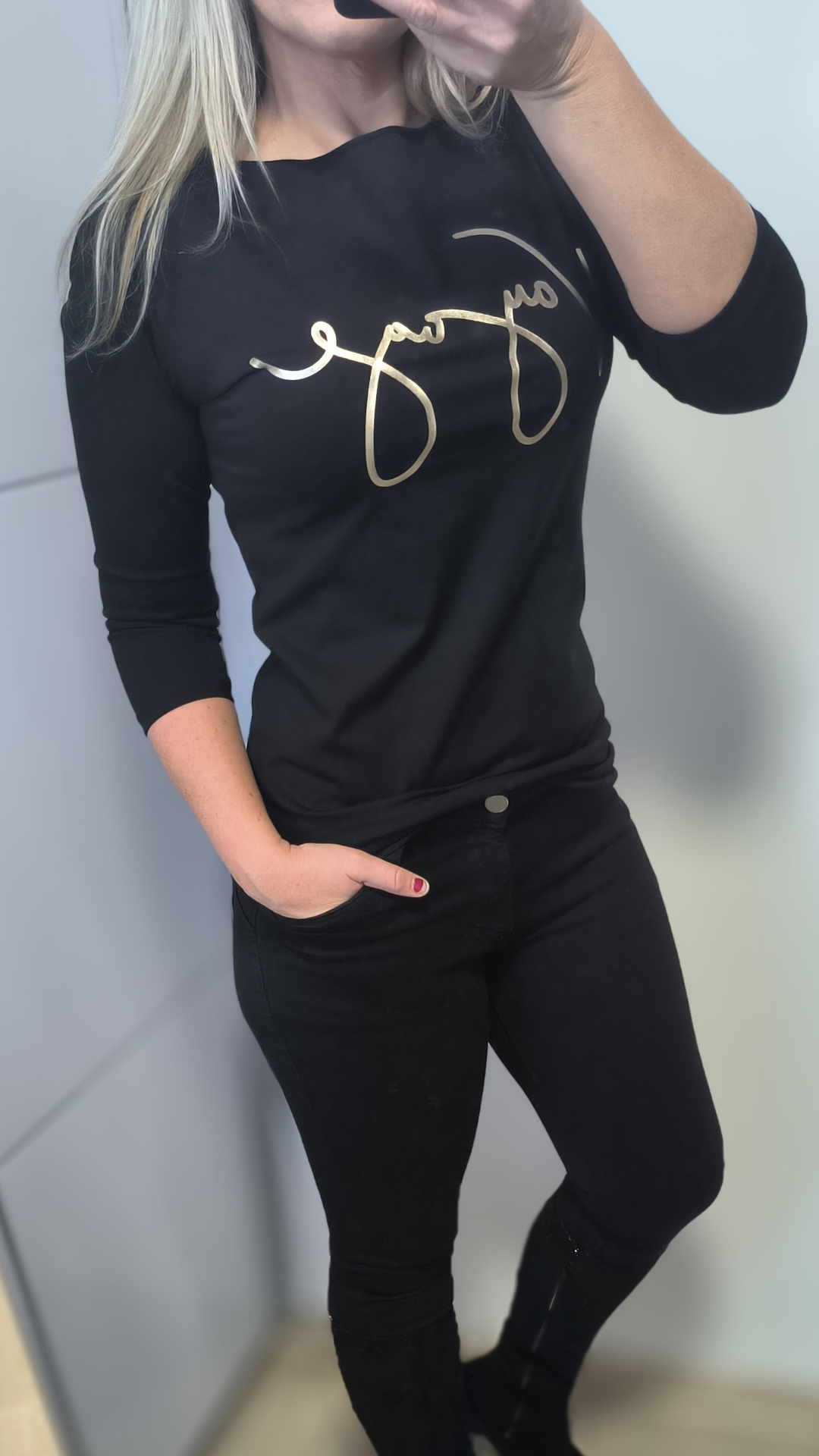 Tričko má pohodlné 3/4 rukávy, díky kterým je ideální na celoroční nošení. Skvěle se kombinuje s džínami, sukní i sakem a hodí se jak na běžné nošení, tak i na elegantnější outfit.