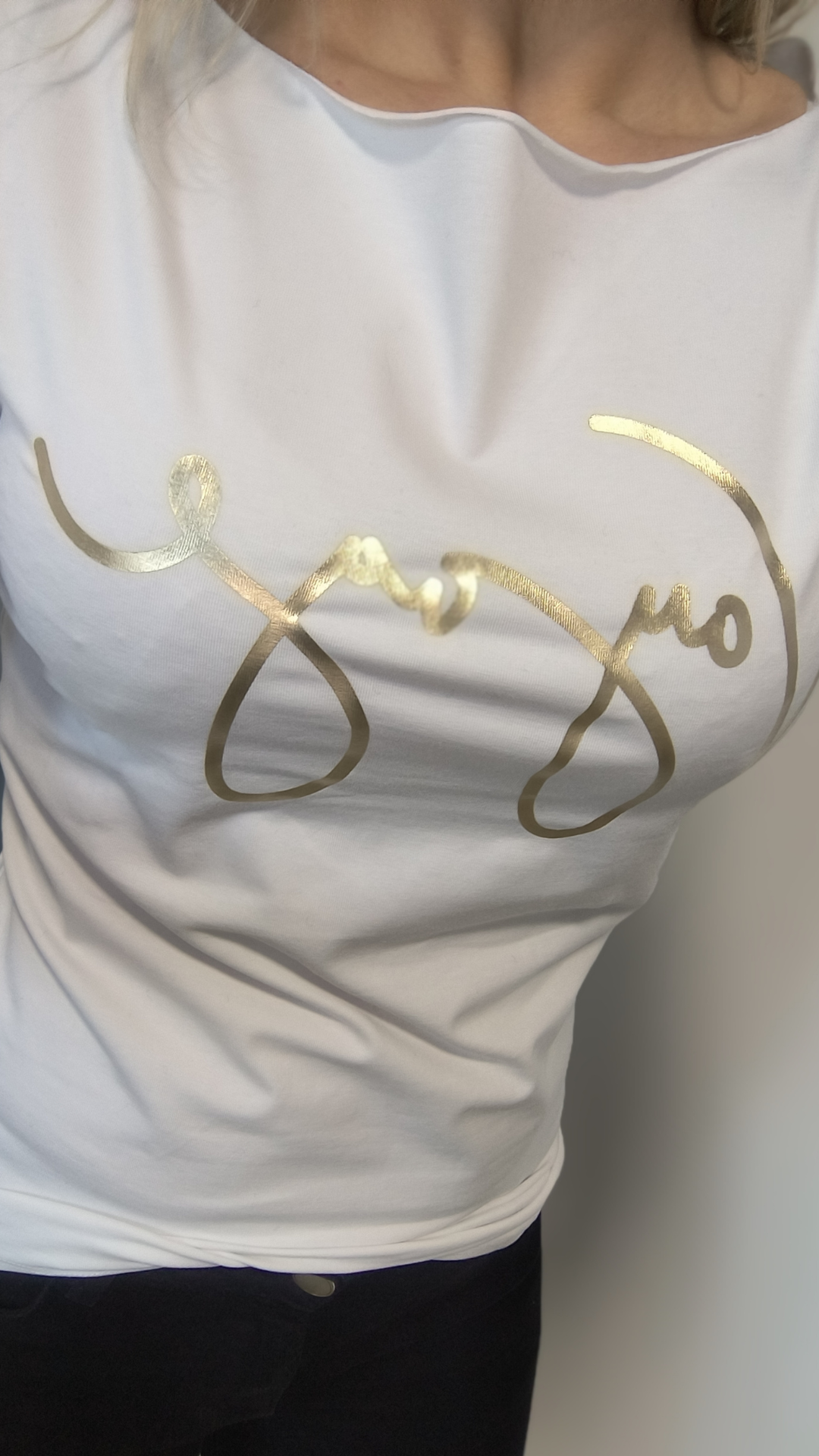 Stylové dámské tričko Nerina je nadčasový kousek, který nesmí chybět v žádném šatníku. Minimalistický design doplňuje luxusní zlatý nápis Vogue, který dodává tričku moderní a elegantní vzhled.