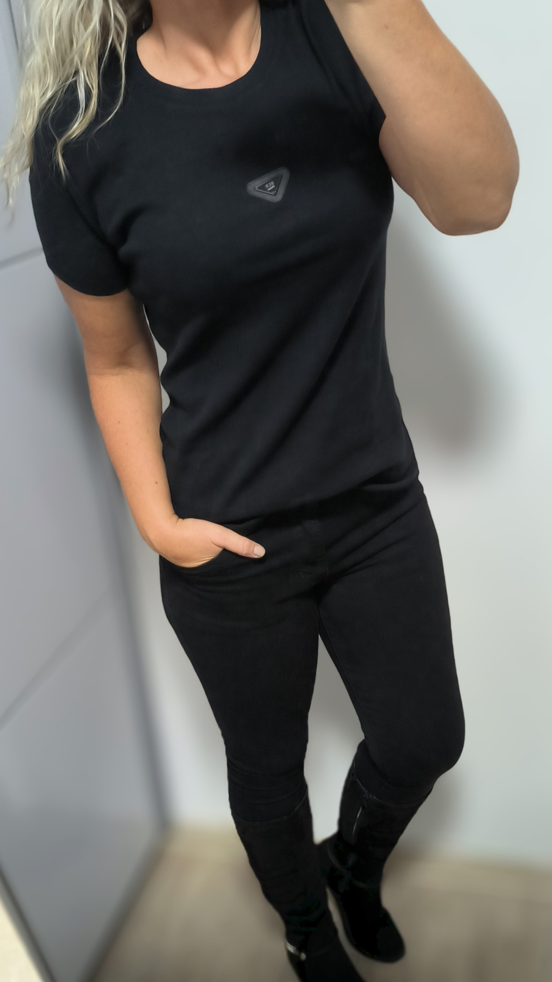 Objevte pohodlné a stylové dámské tričko Rue, které perfektně doplní každý outfit. Tričko je vyrobené z příjemného žebrovaného materiálu, díky kterému krásně obepne postavu a zároveň je pohodlné na nošení. Na prsou je ozdobeno černou aplikací, která dodává moderní a výrazný detail.