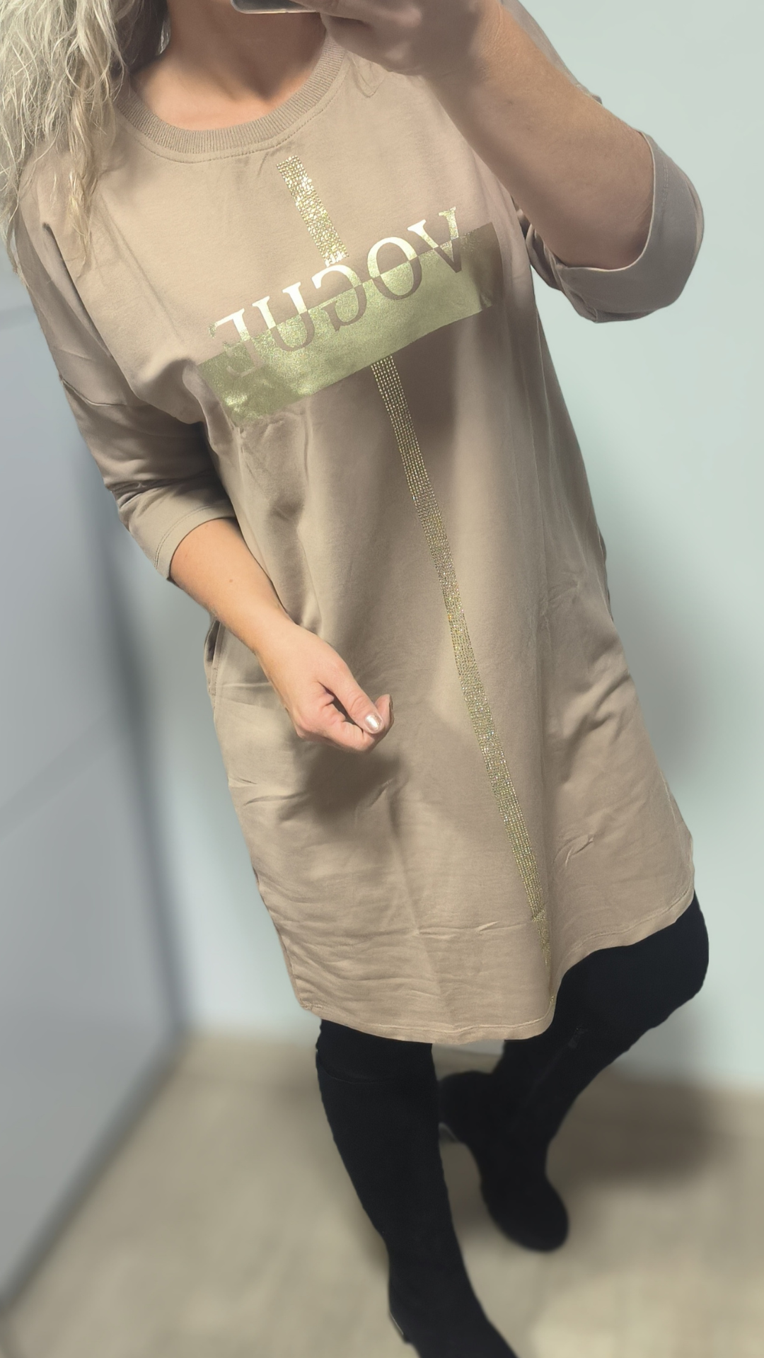 Dopřejte si pohodlnou eleganci s dlouhou mikinou Vogue, která zaujme na první pohled!