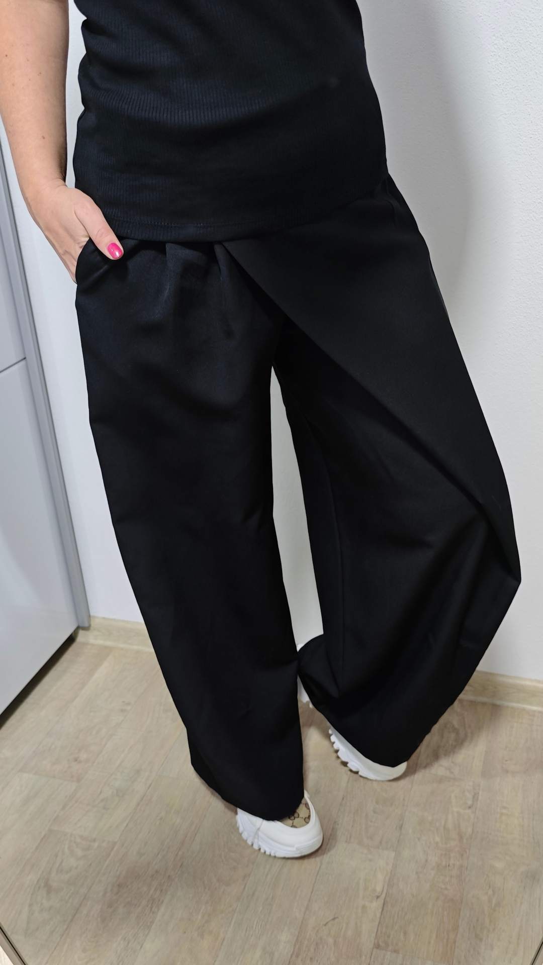 Objevte pohodlí, které si zamilujete. Široké kalhoty ELA s vysokým pasem jsou ideální volbou pro každodenní nošení i elegantnější styling. Díky pružné gumě v pase se krásně přizpůsobí postavě a sednou více velikostem. Volný střih lichotí postavě, prodlužuje siluetu a zajišťuje maximální komfort po celý den.