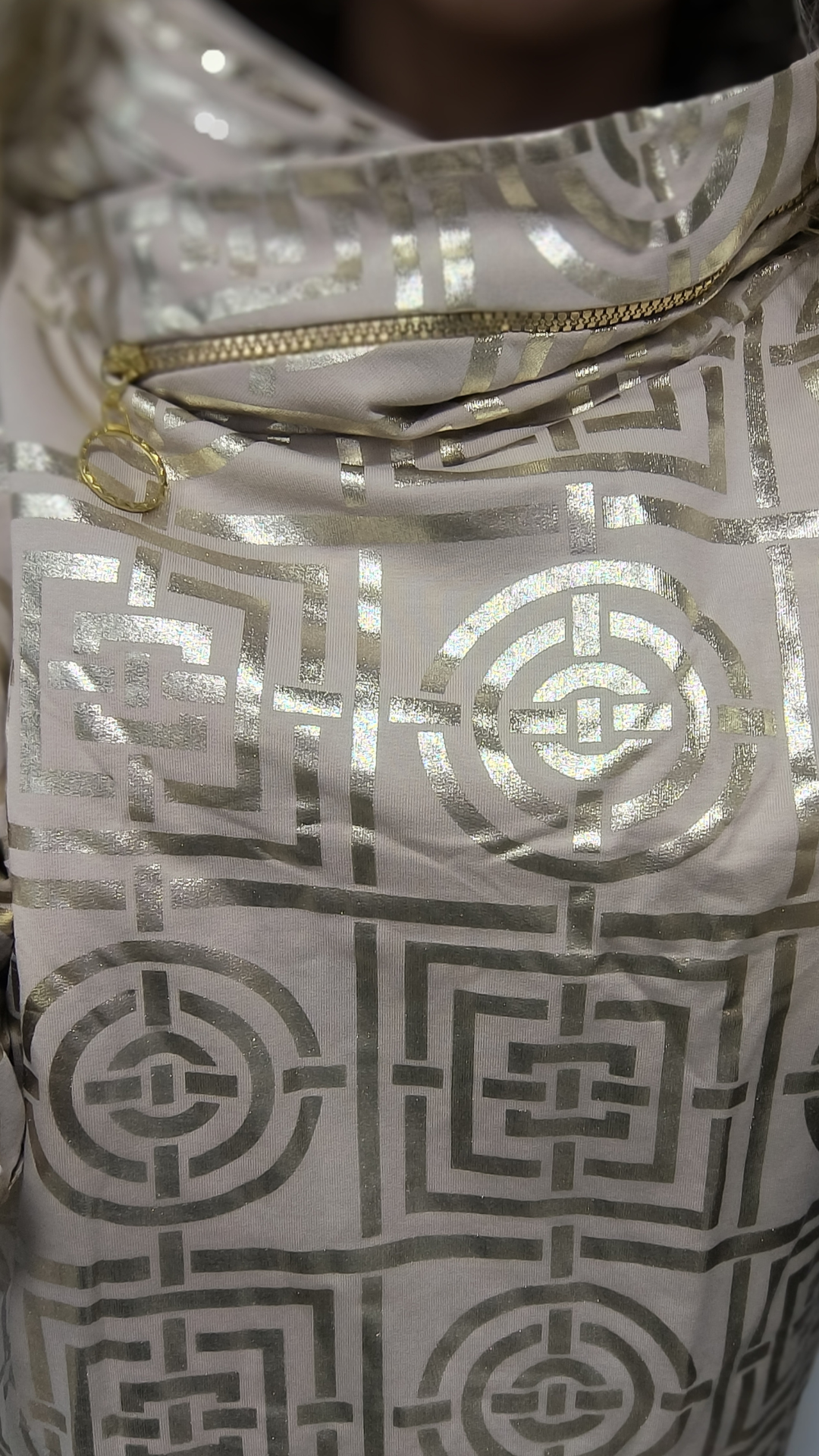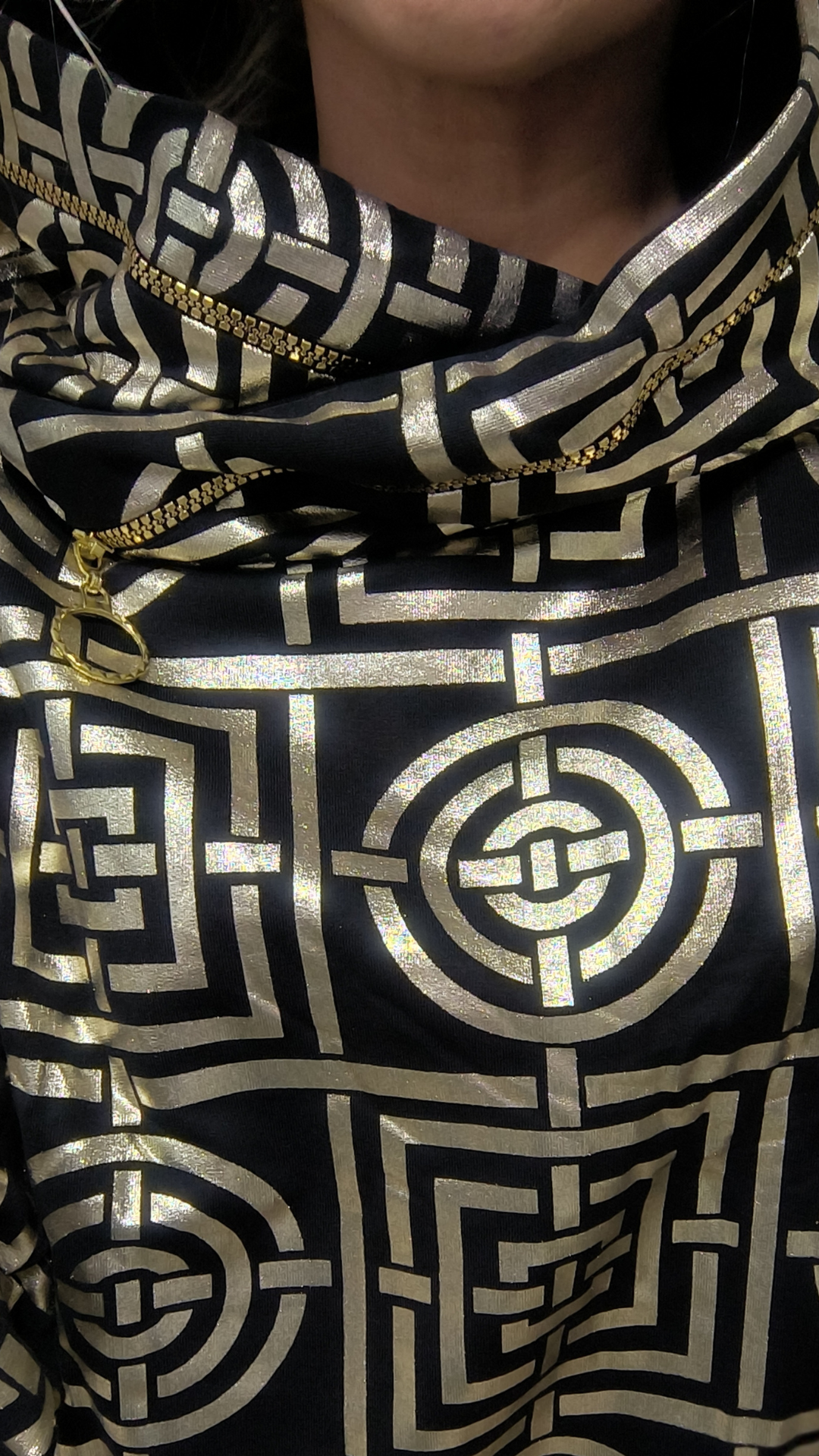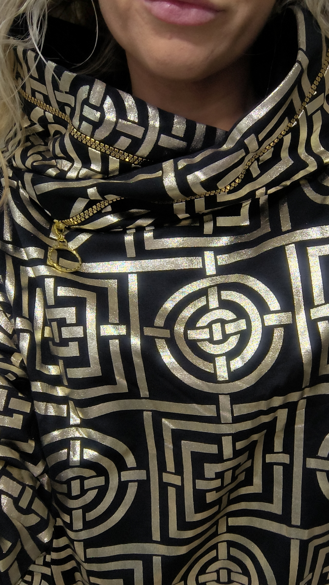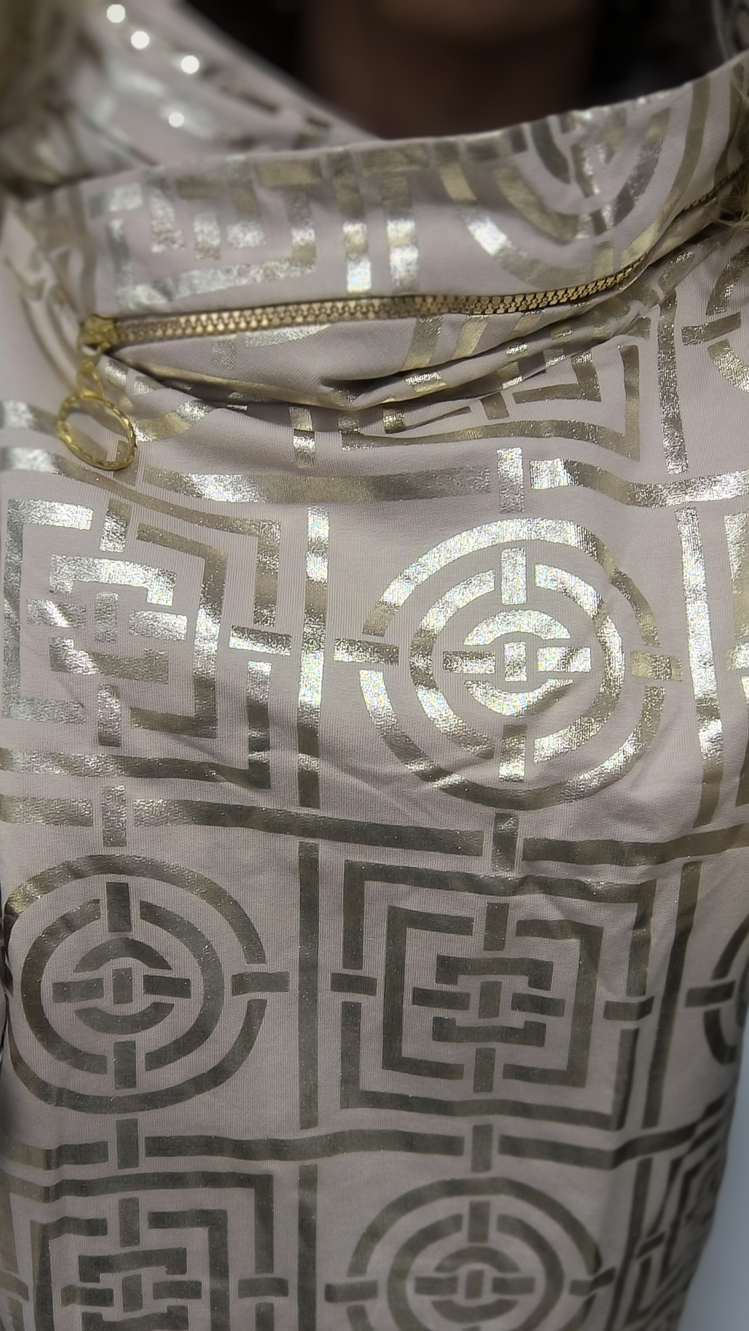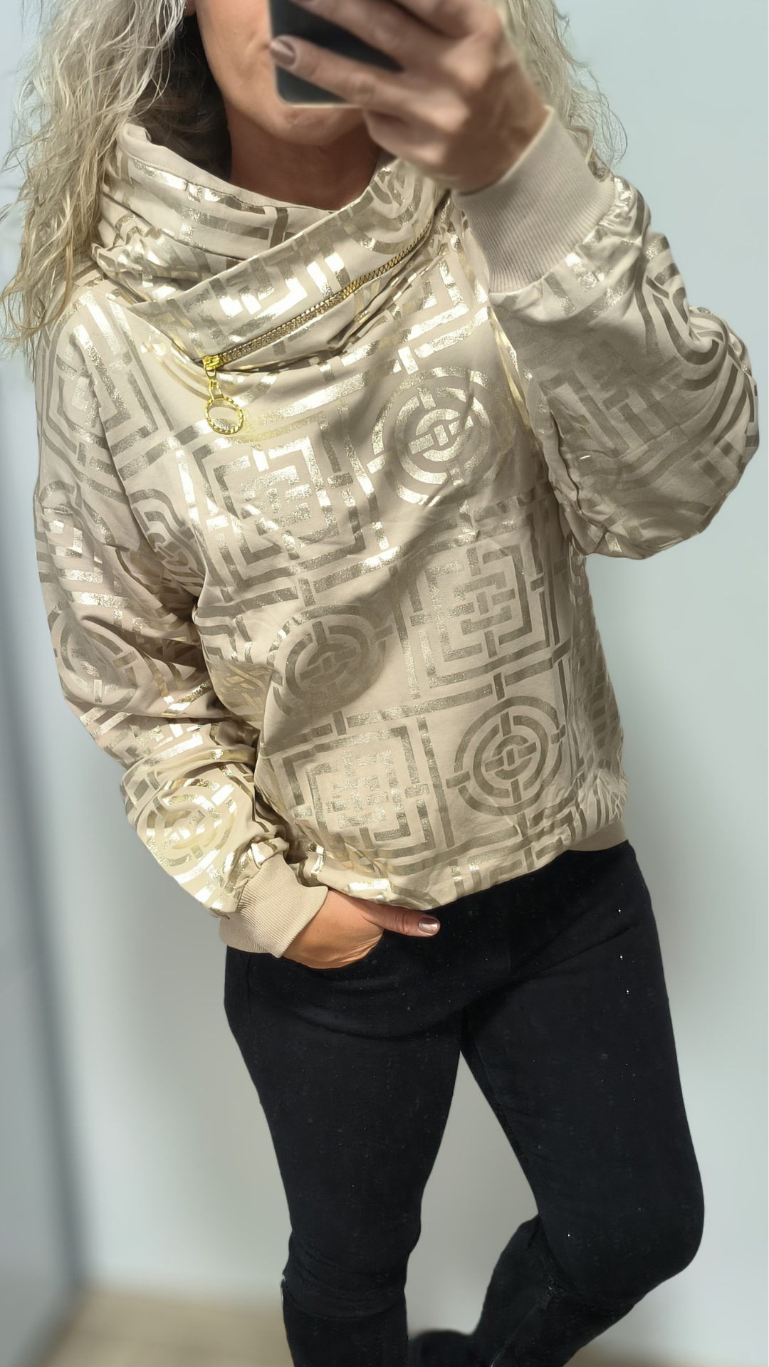 Dostupná ve třech barvách – bílá, černá a světle hnědá, které se snadno kombinují s čímkoliv ve vašem šatníku. Zaujme na první pohled: zlatý potisk a dekorativní zlatý zip na velkém límci dodávají mikině elegantní lesk.