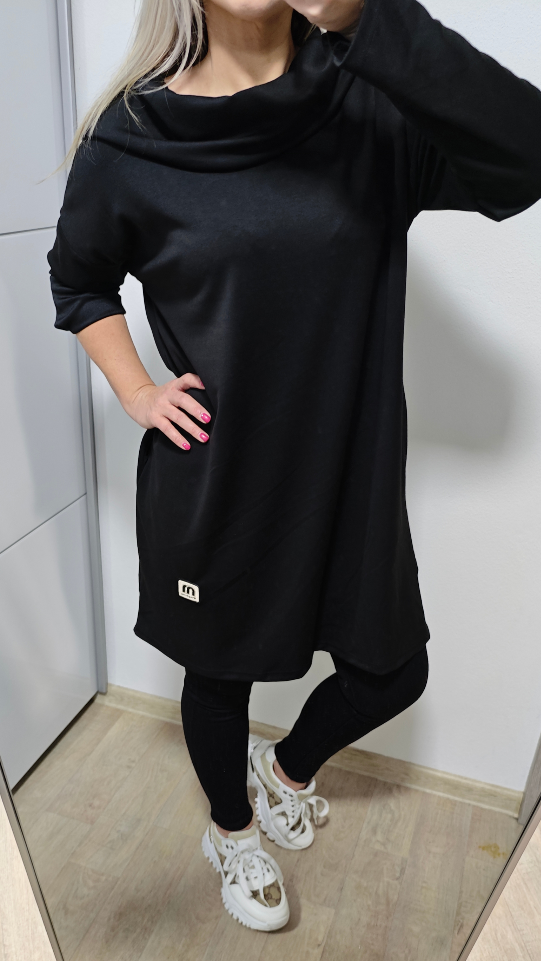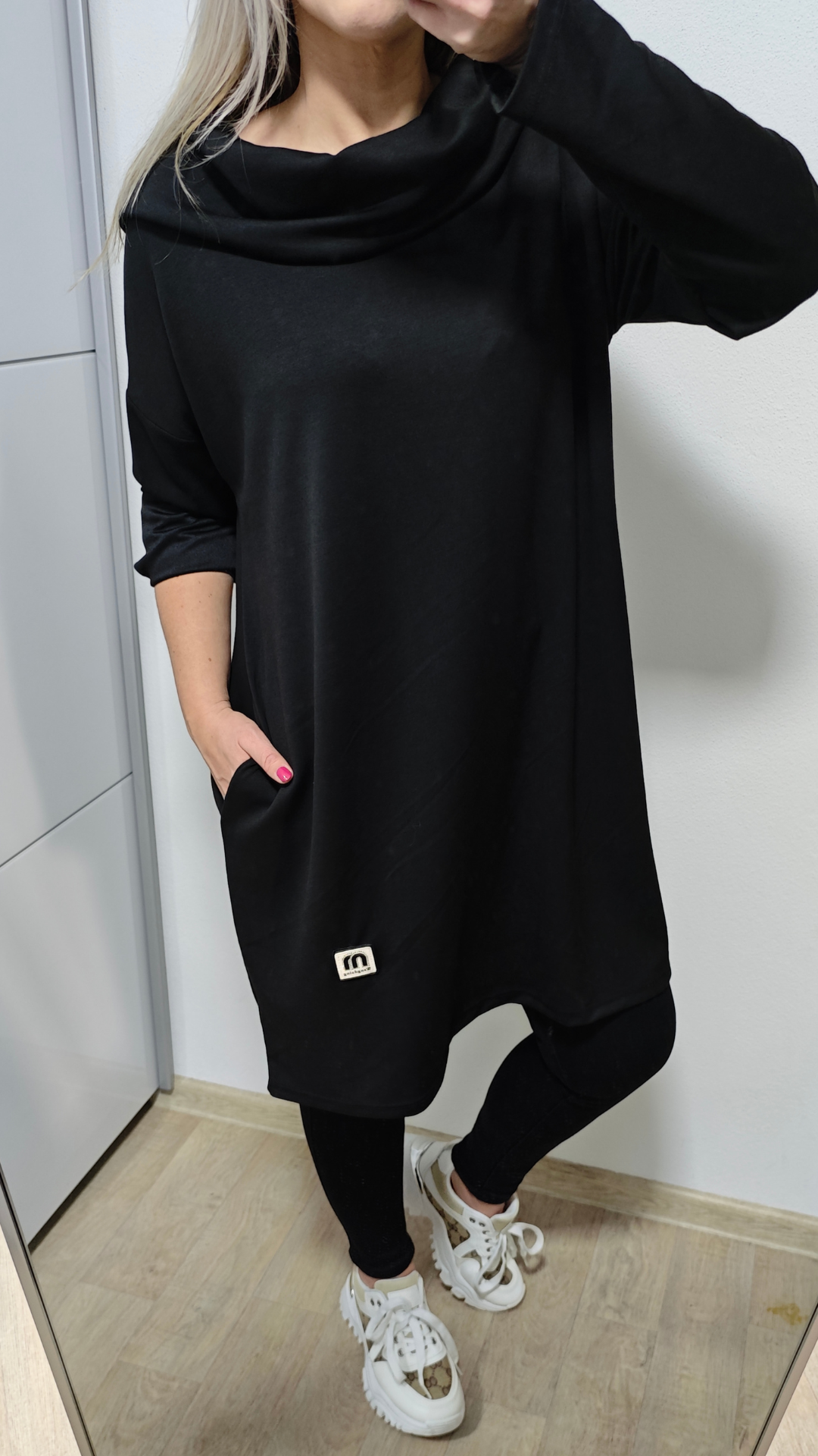 Stylová dlouhá mikina, kterou můžete nosit také jako pohodlné mikinové šaty. Model Mireya v nadčasové černé barvě je ideální pro ženy, které chtějí spojit komfort, eleganci a moderní styl v jednom kousku.