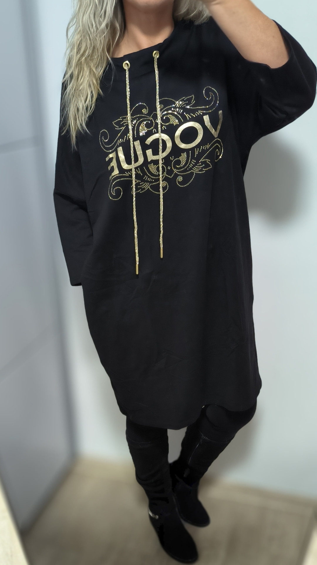Tyto černé mikinové šaty Vogue jsou ideální volbou pro ženy, které chtějí vypadat šik, ale zároveň se cítit pohodlně.