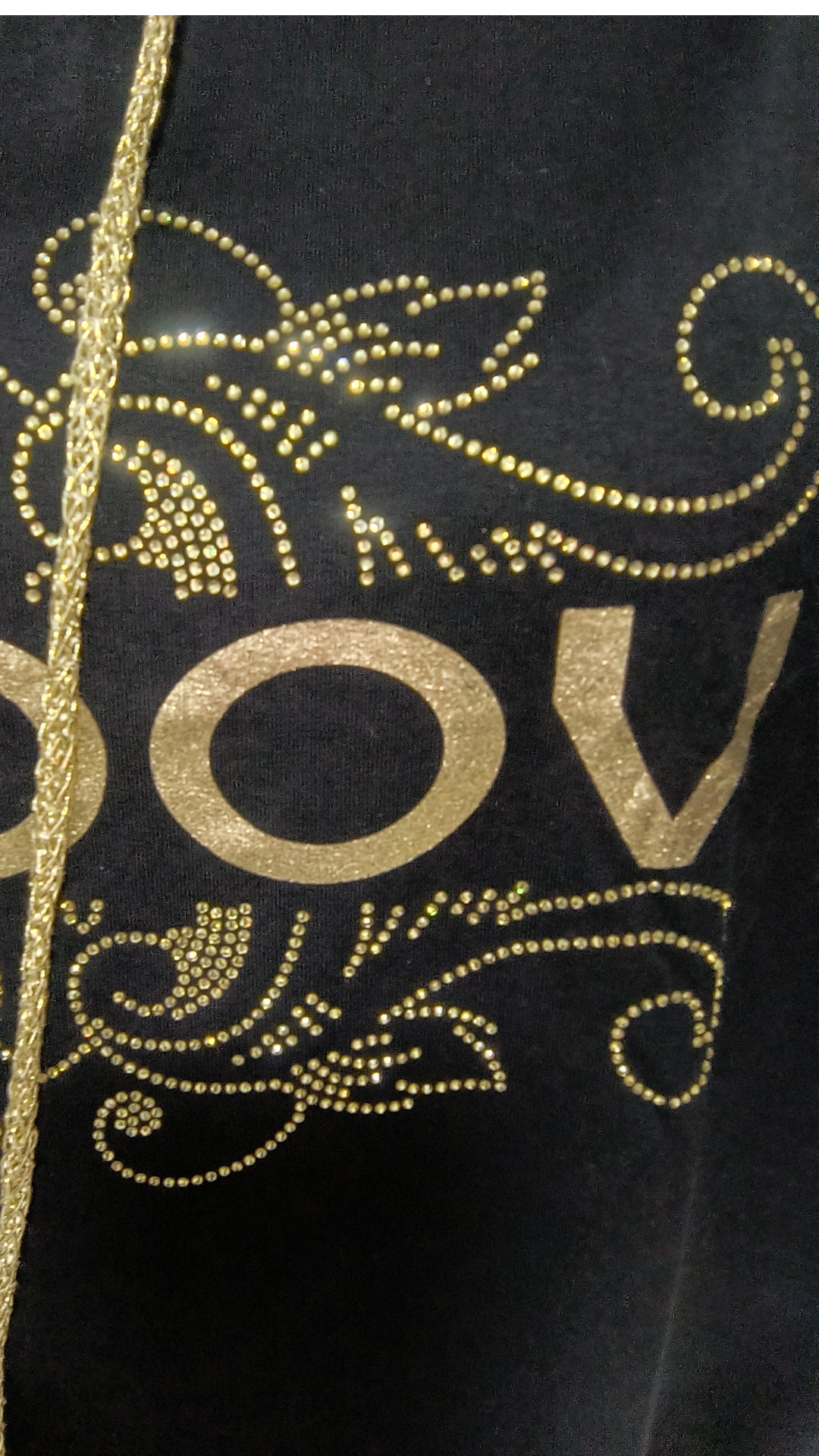 Luxusní zlatý nápis Vogue ozdobený jemnými kamínky