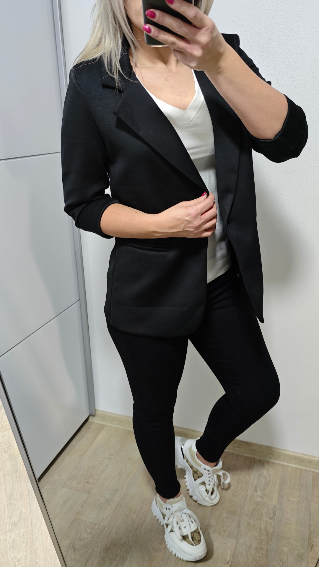 Stylové dámské sako Lira v černé a světle růžové barvě je ideální volbou pro každodenní eleganci i formálnější příležitosti. Díky pružnému materiálu se krásně přizpůsobí postavě a zajistí maximální pohodlí při nošení. Dlouhý rukáv dodává saku klasický vzhled, který snadno zkombinujete s kalhotami i šaty.