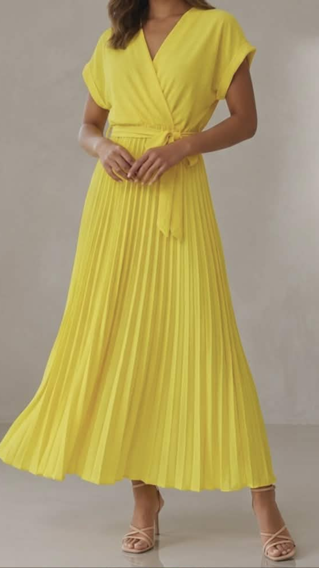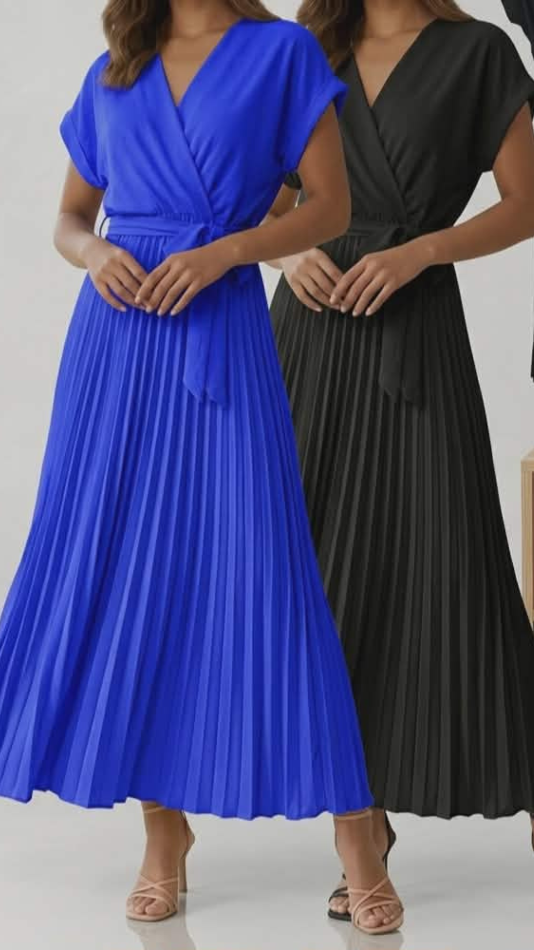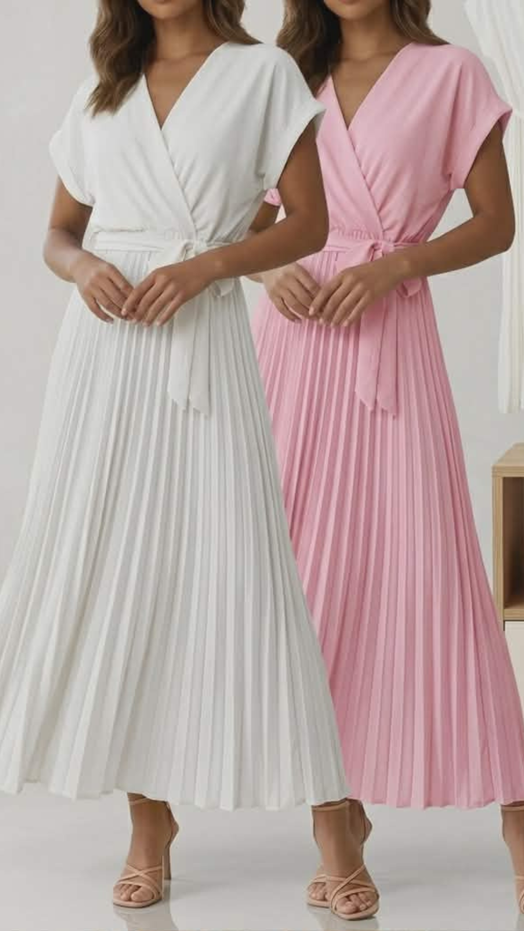Elegantní plisované šaty, které si zamilujete na první obléknutí. Díky lehkému a příjemnému materiálu krásně splývají a lichotí každé postavě. V pase mají pohodlnou gumičku, která se přizpůsobí vaší siluetě, a pásek na zavázání pro zvýraznění ženských křivek.